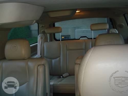 Our white Cadillac Escalade is a great vehicle to take to the airport, it is flashy and stately at the same time.The beige leather interior comfortably seats 6 passengers with a ton of headroom, leg room and enough space for all your luggage.