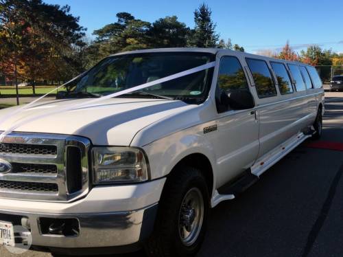 Our Ford Excursion #2 Stretch Limo is large and imposing with a bright white exterior and a contrasting black roof with standard black privacy glass. The Ford Excursion #2 Stretch Limo looks like pure rugged durability on the exterior, but with nice clean lines, the Ford Excursion #2 Stretch Limo is a perfect mix of business professional and party.