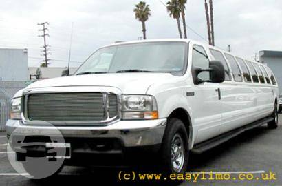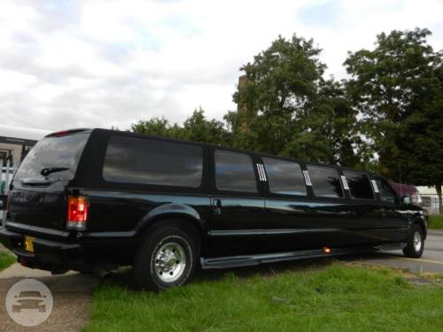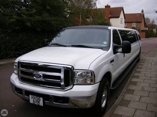 Excursion Arrive in style in the Ford Excursion – the larger than life SUV stretch limo with bags of in-built luxury. The Excursion can comfortably sit up to 16 guests and is one of our most popular limousine models for wedding, prom nights and big nights out on the town. Available in a choice of colours, including black, white and hot pink, these enormous party vehicles give you the wow factor, turning heads wherever you go. The Excursion comes complete with flat screen TV and DVD, music and media system and a host of fun gadgets. The mirrored ceiling is fitted with fibre optics to transform your journey into a party and the tinted windows and full leather seating make everyone inside feel like a superstar. There is a good-sized storage area too for luggage and other belongings. Your limo also comes fully fitted with an internal bar area, which includes a champagne well, glasses and a built-in ice chest to keep that champagne chilled. Soft drinks, ice and water are all included in your hire at no extra cost.