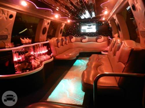 Hummer H2 If you’re looking for Hummer hire London for a special occasion, why not go for the classic Hummer H2? The Hummer is a true party limo, perfect for a big night out. The Hummer is the limo of choice for many top celebrities such as Hollywood actors and pop stars, so you’ll have everyone’s attention when your car arrives and you’re sure to be the envy of all the other guests. Ideas for Hummer Hire London Travelling in a Hummer H2 will add a touch of glamour to any occasion, whether it’s a wedding, prom, hen night or birthday party. It’s ideal for transporting a large group, as the car has space for 16 people. There is also space for storing large bags in the boot, so the limo can be used as transport for a holiday or overnight trip. Inside you’ll have access to all mod cons and a great selection of entertainment. There is a TV and video player, CD player, a moon roof so you can look up at the stars, and an intercom so you can keep in contact with the driver. If you want extra privacy, you can use the window divider to separate your section from the front seats. You will also receive a complimentary selection of drinks to well and truly get the party started! Seating Capacity: Up to 16 passengers Cargo Space: 2-3 Large Bags Amenities: TV/VCR, CD player, privacy window divider, custom lighting, moon-roof, and intercom. Also available, a complimentary “well” bar.