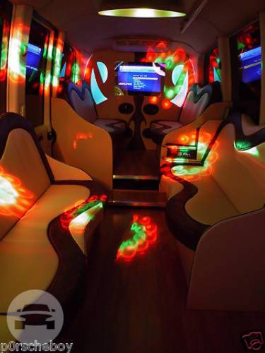 Capacity: 16 Passengers Limo Party Bus It’s a limo. It’s a bus. It’s a Limo Party Bus! The Limo Party Bus is the most fun way to travel to your party destination, or it can even act as your own personal nightclub. The Party Bus is so spacious that it has room for 16 people, and there’s even space to walk around or dance! The bus comes fitted with all mod cons, including CD player, TV and a built in bar. Turn up the music, turn on the fibre optic lights and you’ll be ready to party into the night. Or if you prefer to chill out and enjoy the ride, you can relax in the luxurious leather sofas with are laid out around the full perimeter of the bus. On a practical note, if you’re planning an overnight stay you can fit all your luggage in the spacious storage area. Our drivers are also highly professional and happy to accommodate all your needs, and all our vehicles are safety tested.