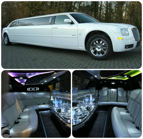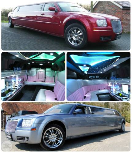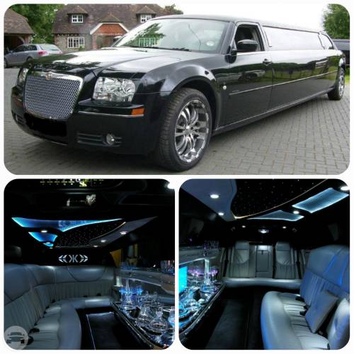 The Chrysler 300c limousines offers configuration seating with 2 tv’s, vcr, mirrored ceiling, elegant walnut bar, and cd stereo. The interior is black premium leather with AM/FM stereo, CD player, and color TV. The limo also comes with Optic Fiber lighting system, sunroof for your sunny days and two fully stocked bars. his is the perfect vehicle for a luxurious night out on the town, weddings, proms and bachelor or bachelorette parties.