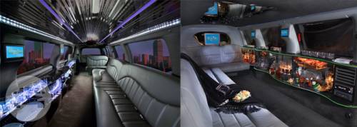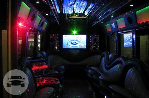 For the ULTIMATE in-group transportation picture yourself in this Brand New, Luxury Limo bus. It offers fine leather perimeter seating, built in bars, Fibber optic lighting, Stereo CD, SOME with DVD player and TV with VCR.